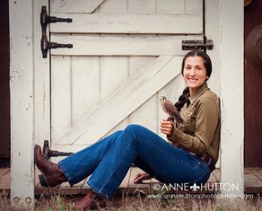 | Photo by: Anne Hutton: The author and Jess, a female American kestrel and the author’s very first falconry bird. |